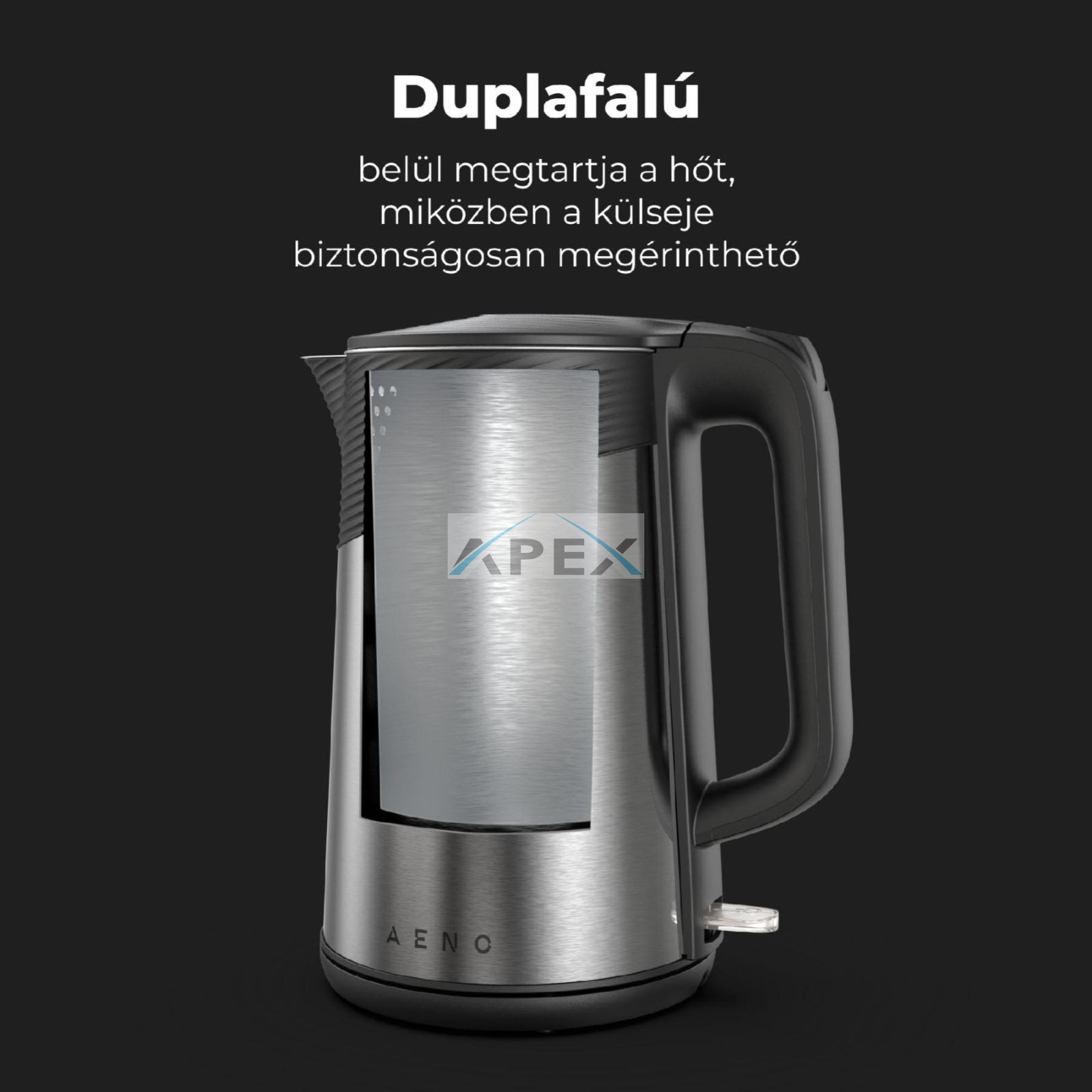 Az AENO EK3 (AEK0003) elektromos vízforraló ezt az igényt tökéletesen kielégíti: 1850–2200 W teljesítményével, 1,7 literes űrtartalmával és dupla falú kialakításával egy elegáns, megbízható társ a mindennapokban.