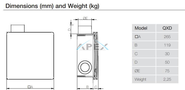 Az Aerauliqa QXD szellőztető ventilátorok formatervezett, könnyen levehető és tisztítható előlappal, zajszigeteléssel, valamint a ventilátort védő, szintén tisztítható szűrővel rendelkeznek. A süllyesztett kialakításnak köszönhetően, csekély mértékű a falsíktól való kiállásuk.