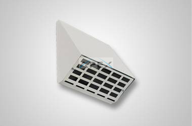 Hangcsillapított kivitelű, külső oldalfalon elhelyezhető ereszelem, rovarvédő hálóval, amely hővisszanyerős vagy hagyományos szellőztető készülékkel szellőztetett lakások / irodák légtechnikai csőrendszerének kilépő / belépő végeleme lehet.