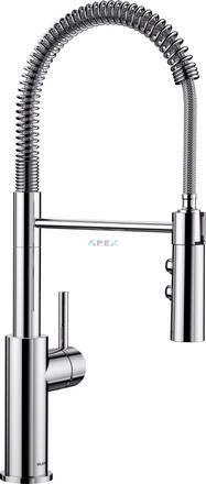 • Flexibilis kifolyócső (rozsdamentes acél rugóval), mozgatható zuhanyfejjel