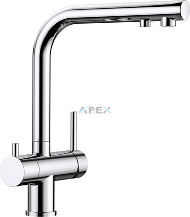 • Kényelmes, 3 az 1-ben csaptelep: a jobb oldali keverőkarral a hideg és meleg vizet lehet szabályozni, a bal oldali karral a szűrt vizet