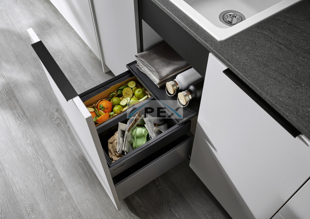 • Opció: praktikus tartozékok, például SELECT Clip szemeteszsáktartó vagy BLANCO MOVEX lábpedál