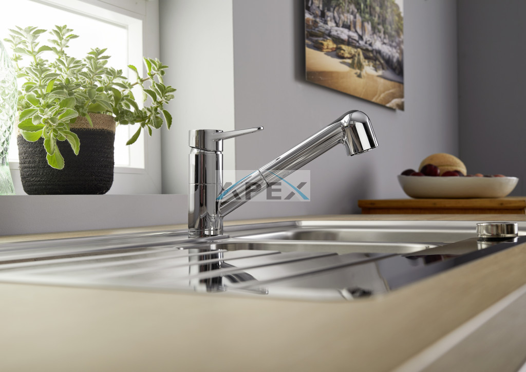 • Felső karos csaptelep a könnyebb kezelhetőség és a rugalmas konyhatervezés érdekében.