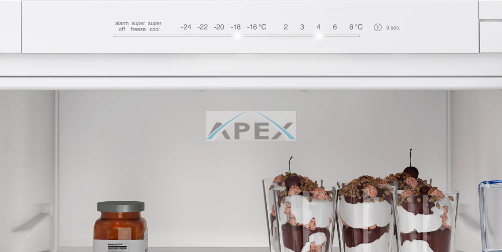 Az extra nagy beépített hűtő-fagyasztó 12%-kal nagyobb hűtési kapacitással, beleértve a Multi Box XXL fiókot a gyümölcsök és zöldségek számára, a No Frost funkciót és a hibajelzőt az optimális tárolás érdekében.