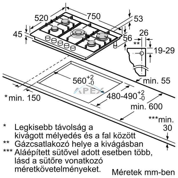 BOSCH PCQ7A5I90 Serie | 6 Gáz főzőlap 75 cm, Nemesacél