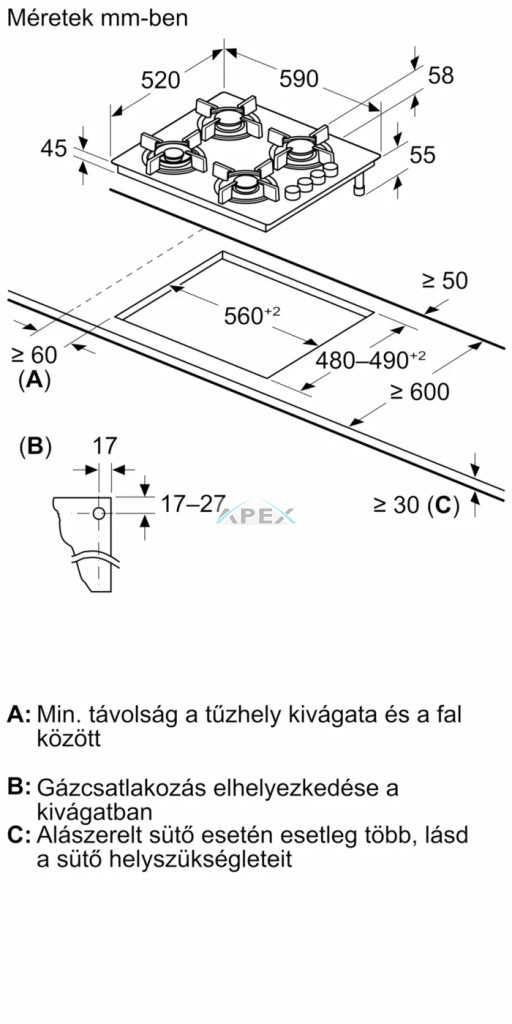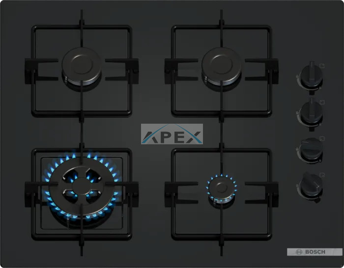 BOSCH POH6B6K30 Serie | 2 Gáz főzőlap 60 cm Edzett üveg, Fekete