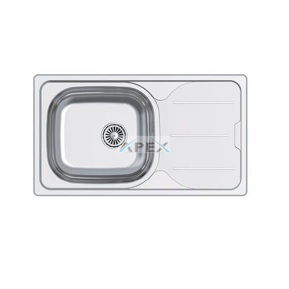1 medencés mosogatótálca csepegtetővel, munkalapra szerelhető, magas minőségű AISI 304 18/8 rozsdamentes acélból, hangcsillapító habréteg a mosogató alsó részén, 0,5 mm lemezvastagság, szekrényméret: 450 mm, méret: 760x435 mm, medence mélység: 150 mm tartozékok. rögzítő fülek, szifon készlet és szűrőkosár