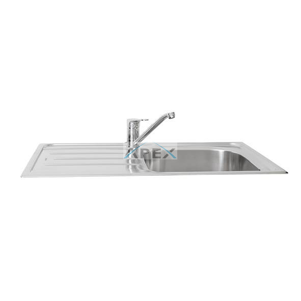 1 medencés mosogatótálca csepegtetővel, munkalapra szerelhető, magas minőségű AISI 304 18/8 rozsdamentes acélból, hangcsillapító habréteg a mosogató alsó részén, 0,8 mm lemezvastagság, szekrényméret: 450 mm, méret: 860x500 mm, medence mélység: 180 mm tartozékok. rögzítő fülek, szifon készlet és szűrőkosár