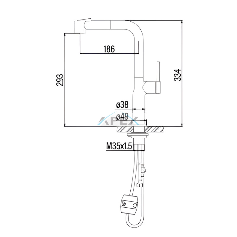 • 360º-ban forgatható “L” alakú csaptelep, hihúzható fejjel