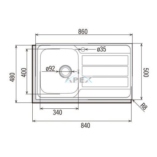 Mosogatótálca méret: