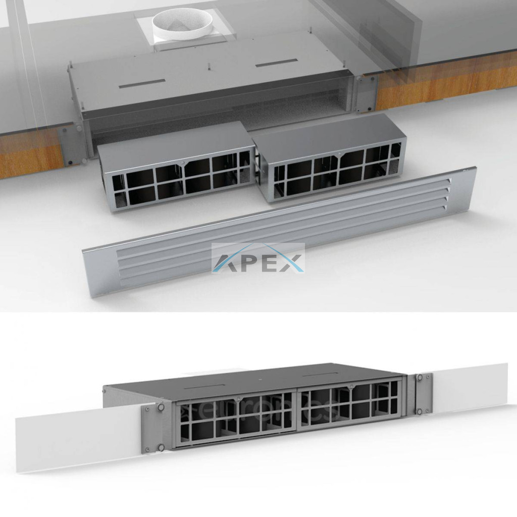Egyszerűen telepíthető, tisztítható aktívszén-szűrő készlet belsőkeringtetéses üzemmódban történő használat esetén. Ebben az esetben a levegő keringtetése a bútor lábazatában elhelyezett szűrőkön keresztül valósul meg, így a megtisztított levegő visszakerül a konyha légterébe. A készlet tartalma: 1 pár aktívszén-szűrő (02800937), szűrőtartó keret, szellőzőrács és a beszereléshez szükséges csavarok). A szűrőket használattól függően maximum 3 havonta tisztítani kell. A szűrők mosogatógépben is moshatók. A szűrő élettartama kb. 3 év. A szűrőt maximum 12-15 alkalommal lehet tisztítani, utána cserélni kell.
