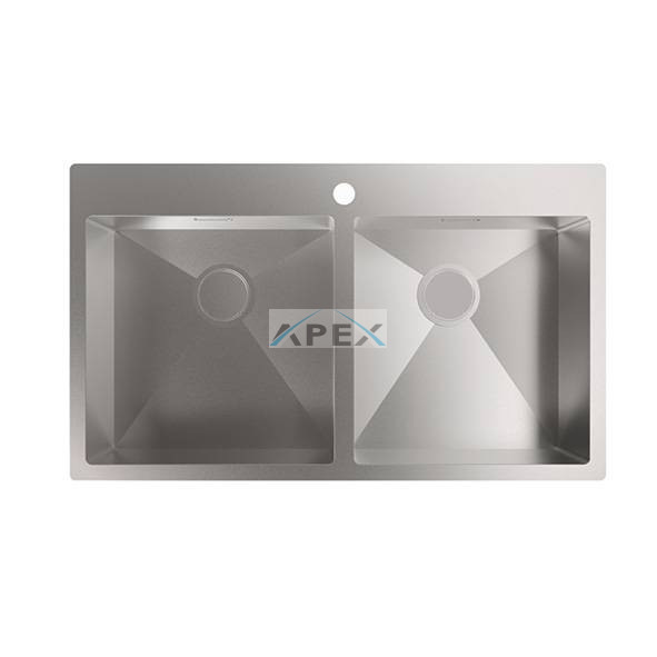 2 medencés mosogatótálca, munkalapra szerelhető, magas minőségű AISI 304 18/8 rozsdamentes acél, hangcsillapító habréteg a mosogató alsó részén, páralecsapodás elleni bevonat, 1,2 mm lemezvastagság, szekrényméret: 900 mm, méret: 860x510 mm, medence mélység: 200 mm tartozékok. rögzítő fülek, szifon készlet és szűrőkosár