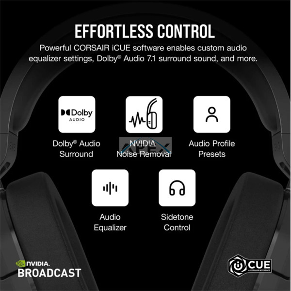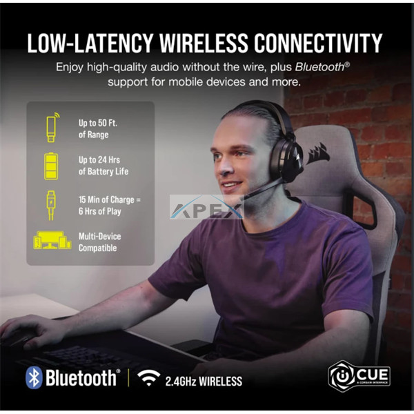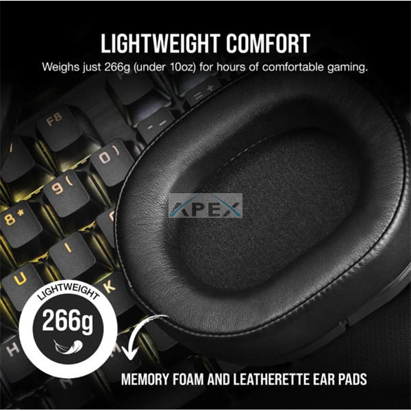 CORSAIR Vezeték Nélküli Headset, HS55 WIRELESS Gaming, 7.1 Hangzás, fekete