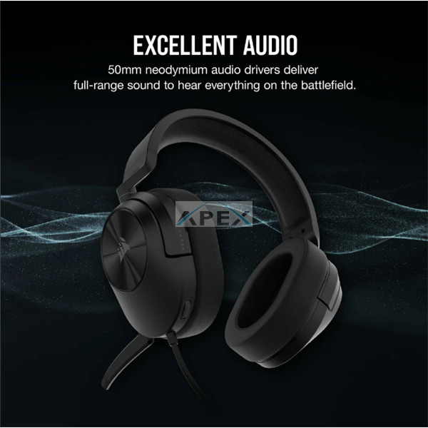CORSAIR Vezetékes Headset, HS55 Gaming, Ultrakönnyű, Jack dugós, fekete