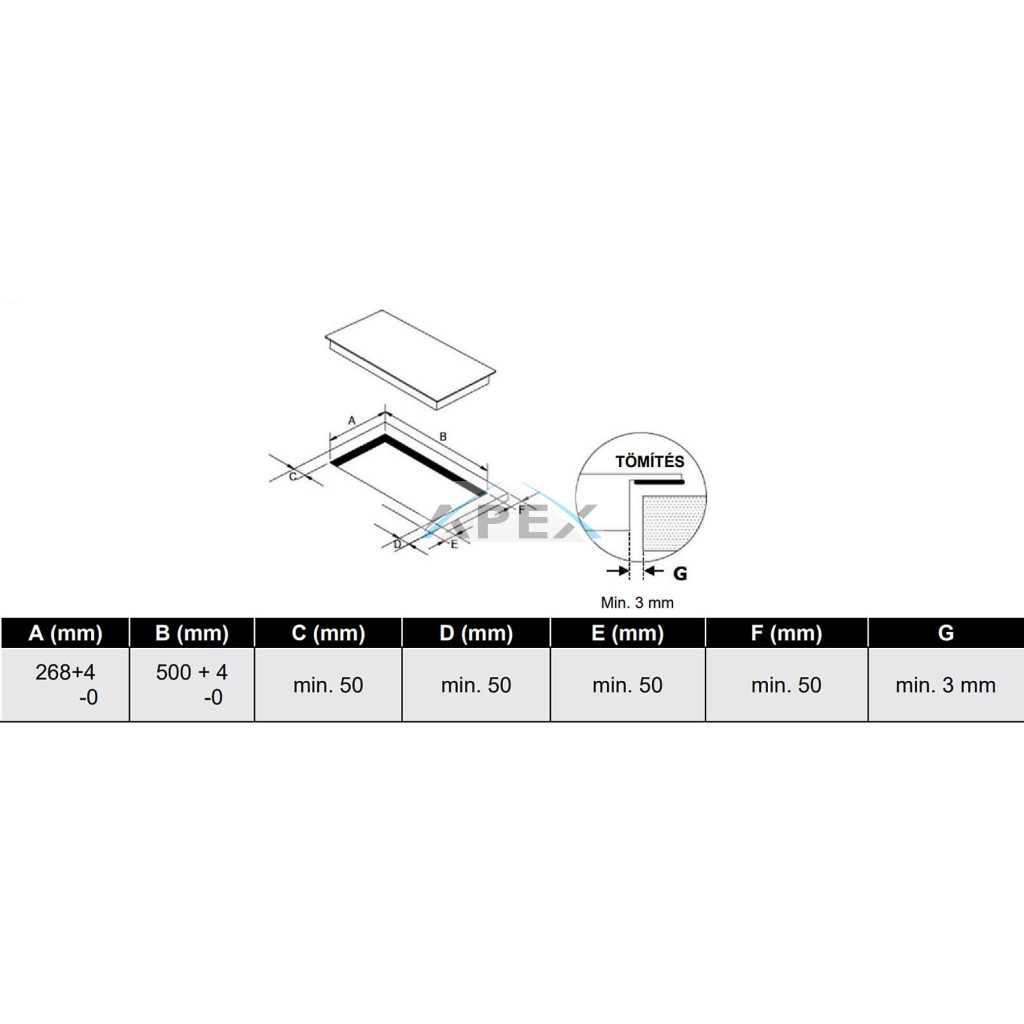 Beépítési méret (mm) 272x504x52