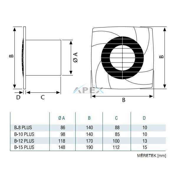 A Cata "B-PLUS" típusú szellőztető ventilátorok hagyományos felépítésű és kialakítású ventilátorok közé tartoznak, melyeket a kedvező ár, klasszikus formatervezés jellemzi. Fürdőszobák, mellékhelyiségek, háztartási helyiségek szellőztetésére tervezték, az elhasználódott levegő közvetlen faláttörésen vagy rövid csőrendszeren keresztül történő kivezetésére. A ventilátor üzemeltethető a helyiség lámpakapcsolójáról vagy a ventilátor számára külön elhelyezett kapcsolóról egyaránt.