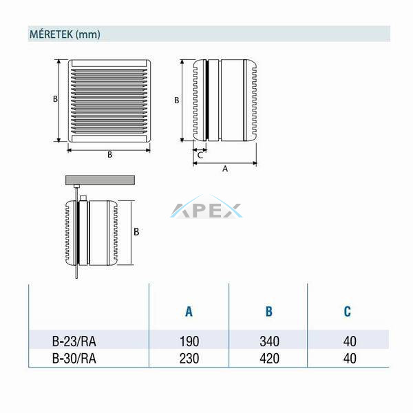 A Cata B23/30 nagy teljesítményű szellőztető ventilátorok formatervezett előlappal, nagy hatékonyságú, alacsony zajszintű lapátozással rendelkeznek. Kiválóan alkalmas irodák és nagyobb helyiségek általános szellőztetésre. Automata előlapjának köszönhetően megakadályozható az esetleges kültérből történő nemkívánatos visszaáramlás. A termék egységcsomagjában megtalálható tartozék segítségével ablakba és falsíkba egyaránt beépíthető.