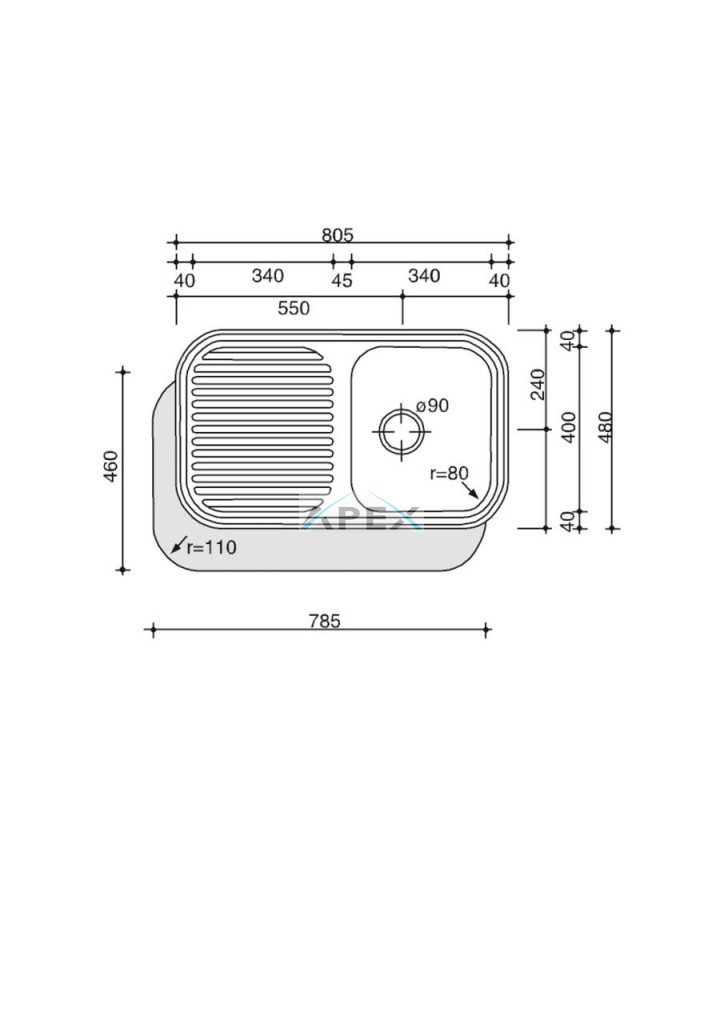 Mosogatótálca mérete: