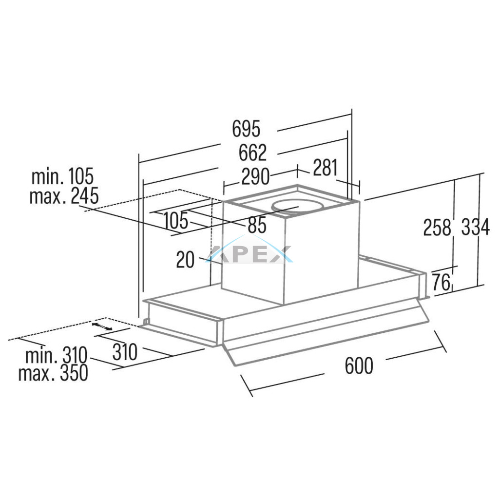 A 150 mm-es csőcsatlakozás biztosítja a hatékony légelvezetést, miközben a készülék kompatibilis a legtöbb konyhai szellőztető rendszerrel. Beépíthető felső szekrénybe vagy kürtőbe is, így szinte bármilyen konyhai elrendezéshez könnyedén illeszkedik.