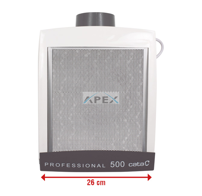 A CATA Professional 500 páraelszívó különlegessége a mindössze 26 cm-es szélessége, amely kategóriájában kiemelkedően keskeny kialakításnak számít. Ez az extra kompakt forma különösen előnyös kisebb konyhákban, ahol minden centiméter számít. A keskeny kivitel nem jelenti a teljesítmény csökkenését: a készülék erőteljes működésével gondoskodik arról, hogy Ön akkor is élvezhesse a friss és tiszta levegőt, ha a konyhában korlátozott a hely.