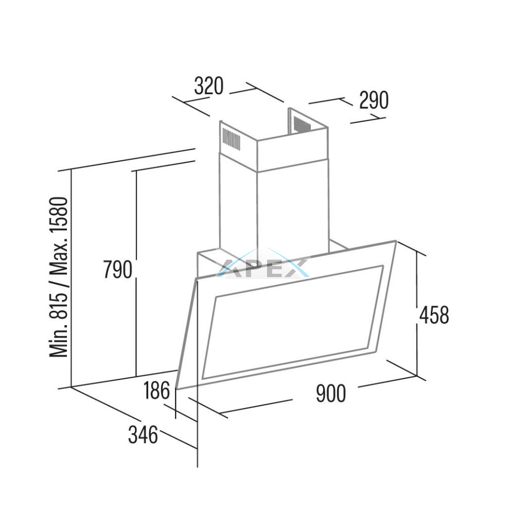 Pneumatikusan (sürített levegővel működő) nyitható üveg előlap az elszívási erő foozásának érdekében.