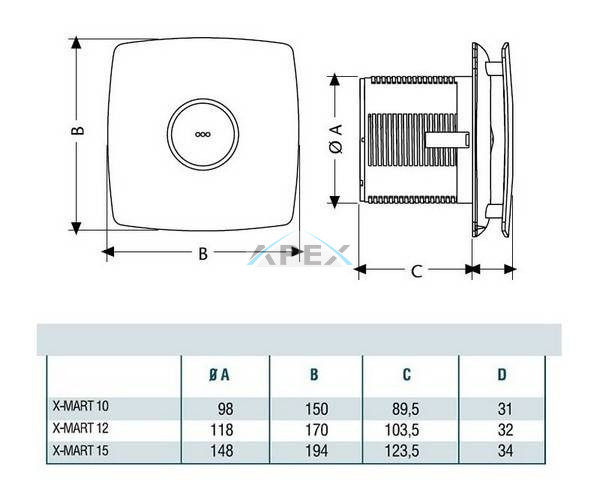 A Cata X-MART típusú szellőztető ventilátorok formatervezett kialakításának nem csak esztétikai, hanem áramlástechnikai szerepe is van. A hasonló teljesítményű, hagyományos kialakítással rendelkező társaihoz képest alacsonyabb zajszint jellemzi. Fürdőszobák, mellékhelyiségek, háztartási helyiségek szellőztetésére tervezték, az elhasználódott levegő közvetlen faláttörésen vagy rövid csőrendszeren keresztül történő kivezetésére. A ventilátor üzemeltethető a helyiség lámpakapcsolójáról vagy a ventilátor számára külön elhelyezett kapcsolóról egyaránt.