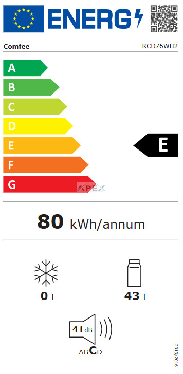 Comfee RCD76WH2 egyajtós hűtőszekrény 43 L