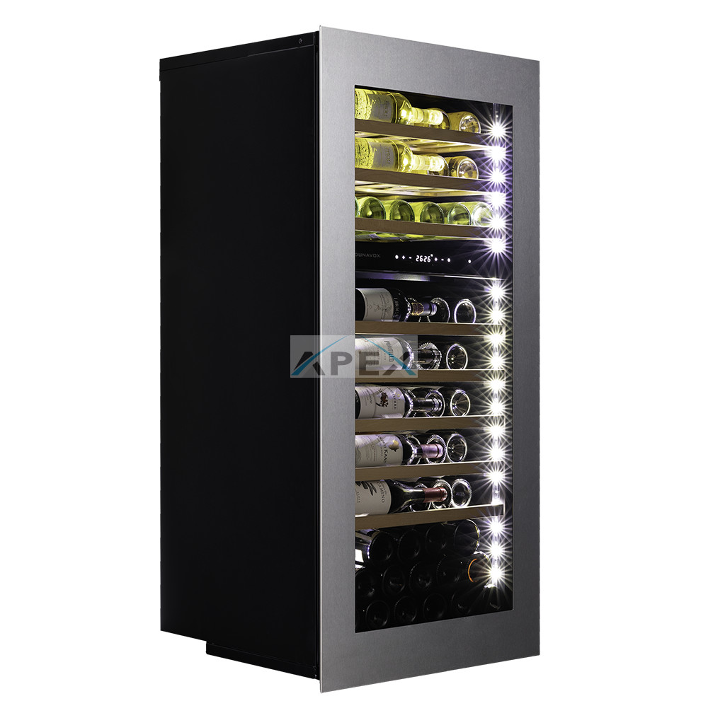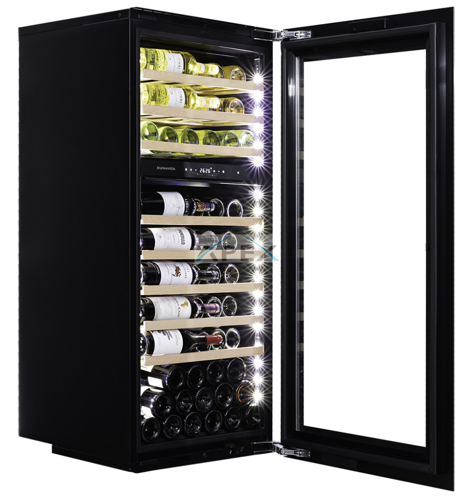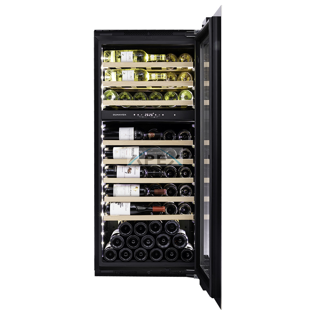 Kétszekciós, 72 palackos beépíthető modell, amely integrált szellőzéssel rendelkezik. A DUNAVOX Soul-72 elegáns, igényes belső és külső kialakításával és a rozsdamentes acél fogantyújával teszi igazán mutatóssá a modern konyhákat. A palackok tömör bükkfa polcokon helyezhetőek el, melyeket fehér, borostyánsárga vagy kék LED világítás ölelhet körül. A felső zóna mindig legyen hidegebb, mint az alsó zóna, az ajánlott hőmérsékletkülönbség 4°C. Felhívjuk figyelmét, hogy ez a modell egy beépített egység, amelyet konyhaszekrénybe terveztek, szabadon állóként és pult alatti beépítésre nem használható.