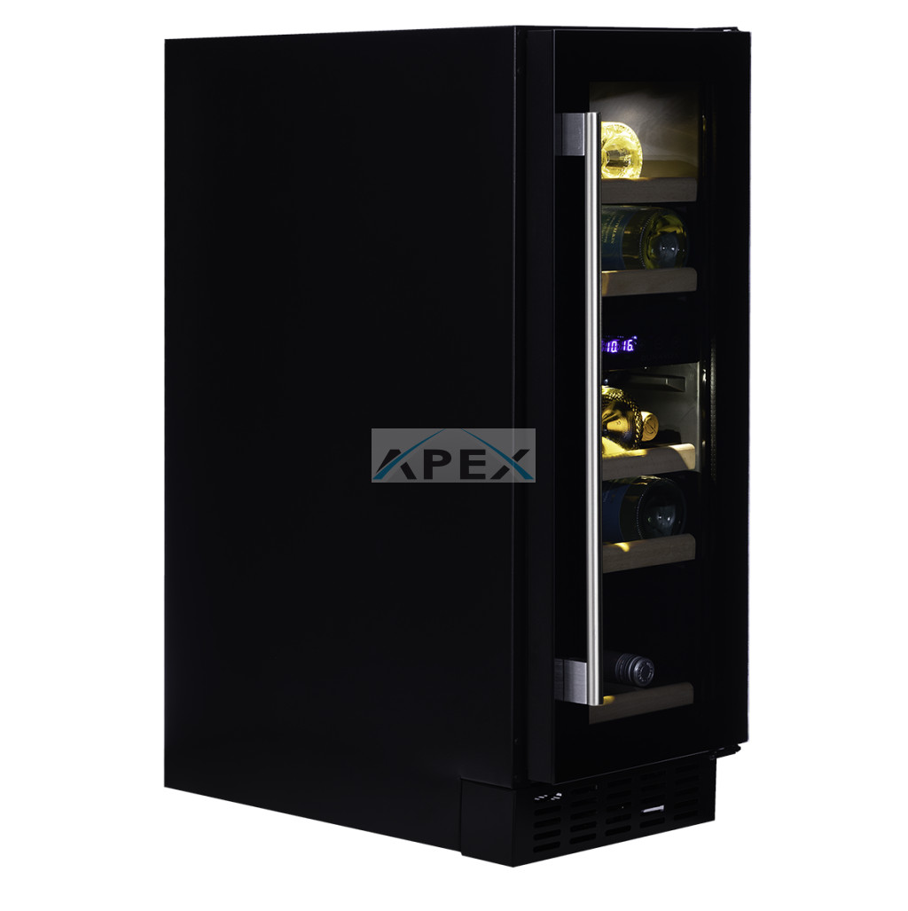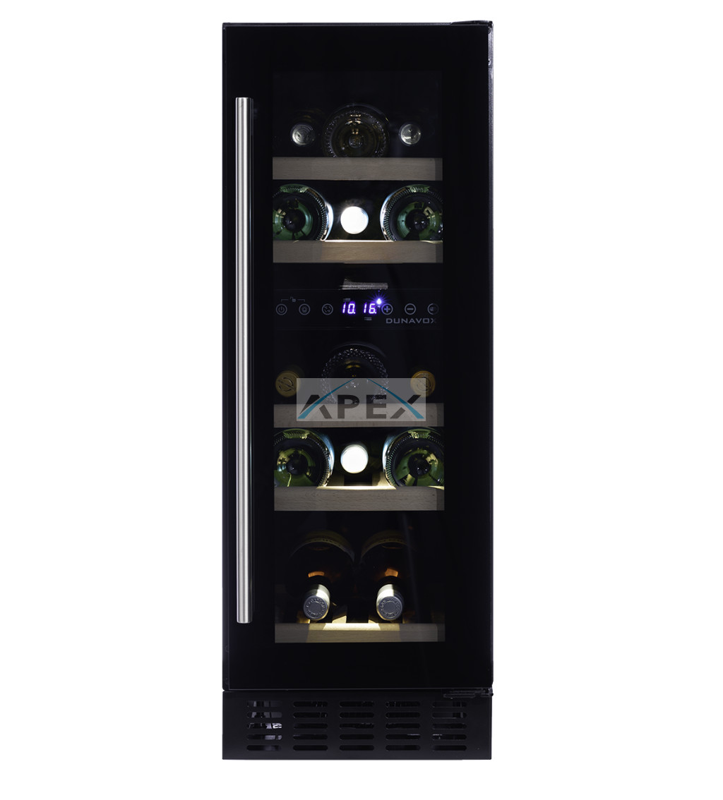Kétszekciós, 17 palackos pult alá építhető modell. A DUNAVOX Flow-17 elegáns, igényes belső és külső kialakításával és a rozsdamentes acél fogantyújával teszi igazán mutatóssá a modern konyhákat. A palackok tömör fa polcokon helyezhetőek el, melyeket kék LED világítás ölel körül. Felhívjuk figyelmét, hogy ez a modell egy beépített egység, amelyet pult alá terveztek.