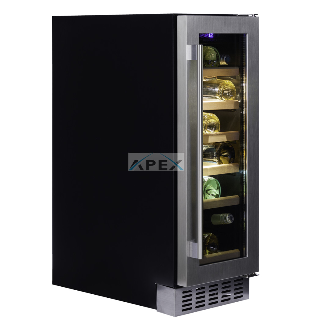 Egyszekciós, 19 palackos pult alá építhető modell. A DUNAVOX Flow-19 elegáns, igényes belső és külső kialakításával és a rozsdamentes acél fogantyújával teszi igazán mutatóssá a modern konyhákat. A palackok tömör fa polcokon helyezhetőek el, melyeket kék LED világítás ölel körül. Felhívjuk figyelmét, hogy ez a modell egy beépített egység, amelyet pult alá terveztek.