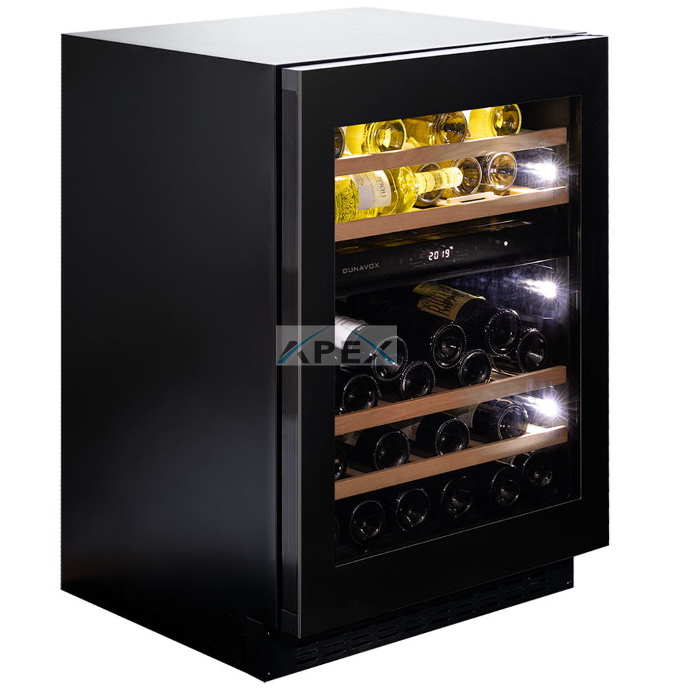 Kétszekciós, 45 pult alá építhető modell. Igényes belső és külső kialakításával és a „push-to-open” technológiával elengedhetetlen része minden modern konyhának. A színezett üvegajtó felső sarkának megnyomásával nyitható, így biztosítva hozzáférést a tömör bükkfa polcokon fekvő palackokhoz. Borait fehér, borostyánsárga vagy kék LED világítás ölelheti körül. A felső zóna mindig legyen hidegebb, mint az alsó zóna, az ajánlott hőmérsékletkülönbség 4°C. Felhívjuk figyelmét, hogy ez a modell egy beépített egység, amelyet pult alá terveztek.