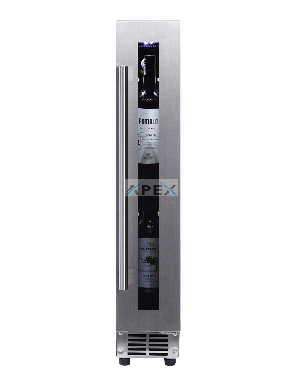 Egyszekciós, 9 palackos pult alá építhető modell. Karcsú és elegáns megjelenésével, valamint rozsdamentes acél fogantyújával a teszi igazán mutatóssá a korlátozott méretű konyhákat. A palackok lenyűgöző fehér fényben, rögzített polcokon kapnak helyet. Felhívjuk figyelmét, hogy ez a modell egy beépített egység, amelyet pult alá terveztek.