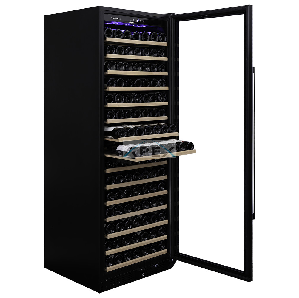 Egyszekciós, 183 palackos szabadon álló modell a Dunavox Grande sorozatból. A DUNAVOX Grande-194 elegáns, igényes belső és külső kialakításával teszi igazán mutatóssá a modern konyhákat, éttermeket vagy szállodákat. A palackok tömör fa polcokon helyezhetőek el, melyeket kék LED világítás ölel körül. Felhívjuk figyelmét, hogy ez a modell egyaránt építhető konyhabútorba, vagy használható szabadon álló borhűtőként.
