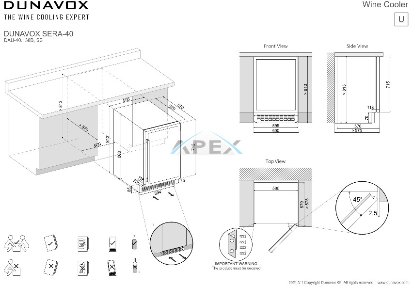 Telepítési követelmény Elülső szellőző rács szabadon hagyásával beépíthető, az egységet a pultra kell rögzíteni, különben felborul