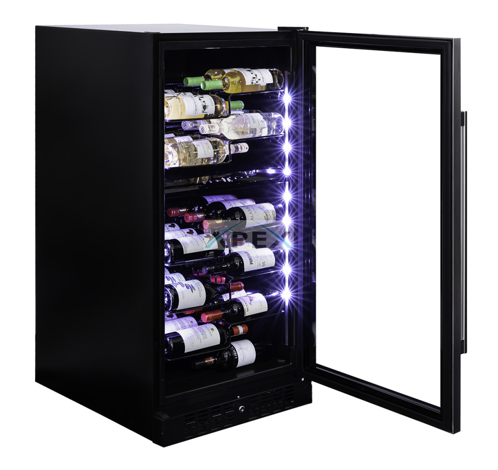 A DUNAVOX Sera-58 aktívan hűti le kedvenc pezsgős vagy proseccós palackjait, valamint hűvösen és frissen is tartja őket. Ideális 58 pezsgősüveg kényelmes tárolására. Kétszekciós, szabadon álló modell, elegáns külsővel és rozsdamentes acél fogantyúval. A palackok kihúzható speciális fém display polcokon helyezhetőek el, melyeket fehér, borostyánsárga vagy kék LED világítás ölelhet körül. A felső zóna mindig legyen hidegebb, mint az alsó zóna. Felhívjuk figyelmét, hogy ez a modell egyaránt építhető konyhabútorba, vagy használható szabadon álló borhűtőként.