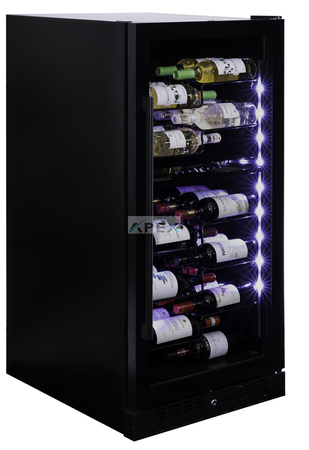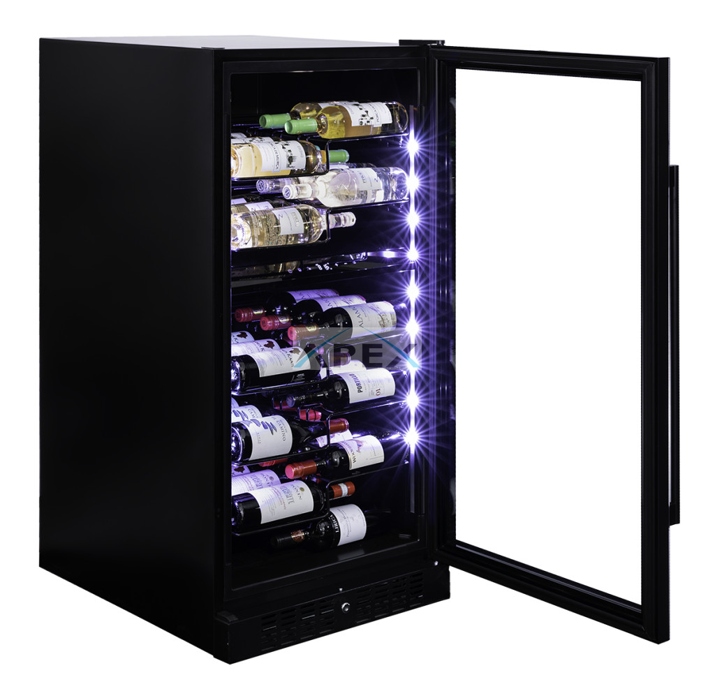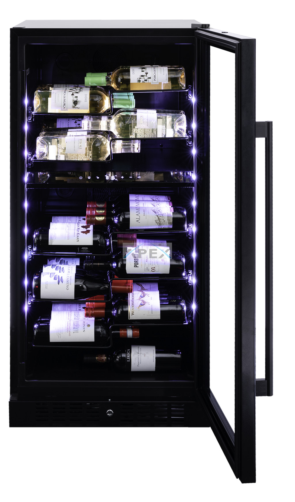 A DUNAVOX Sera-58 aktívan hűti le kedvenc pezsgős vagy proseccós palackjait, valamint hűvösen és frissen is tartja őket. Ideális 58 pezsgősüveg kényelmes tárolására. Kétszekciós, szabadon álló modell, elegáns külsővel és rozsdamentes acél fogantyúval. A palackok kihúzható speciális fém display polcokon helyezhetőek el, melyeket fehér, borostyánsárga vagy kék LED világítás ölelhet körül. A felső zóna mindig legyen hidegebb, mint az alsó zóna. Felhívjuk figyelmét, hogy ez a modell egyaránt építhető konyhabútorba, vagy használható szabadon álló borhűtőként.
