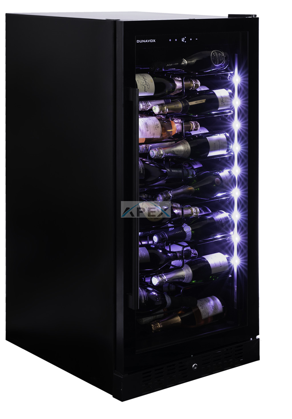 A DUNAVOX Sera-70 aktívan hűti le kedvenc pezsgős vagy proseccós palackjait, valamint hűvösen és frissen is tartja őket. Ideális 70 pezsgősüveg kényelmes tárolására. Egyszekciós, szabadon álló modell, elegáns külsővel és rozsdamentes acél fogantyúval. A palackok kihúzható speciális fém display polcokon helyezhetőek el, melyeket fehér, borostyánsárga vagy kék LED világítás ölelhet körül. Felhívjuk figyelmét, hogy ez a modell egyaránt építhető konyhabútorba, vagy használható szabadon álló borhűtőként.