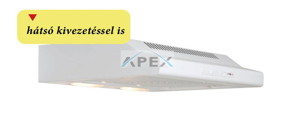 A modern üveg légterelő védi a bútort a feláramló gőzöktől. A bizonyos modellek tartozéka a fém zsírfilter ami mosogatógépben mosható. Inox vagy fehér színben, 50 és 60 cm széles méretben választható, így kisebb konyhákba, hétvégi házakba is tökéletes megoldást nyújt.