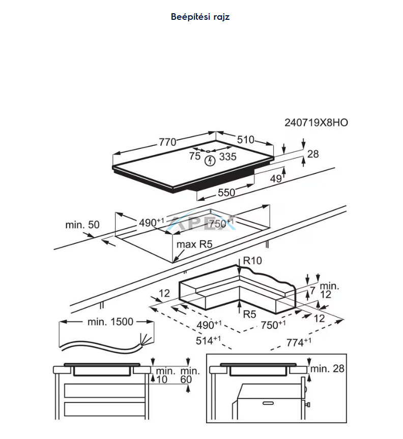 • Beépítési méretek (mag*szél*mély) (mm): 44x750x490