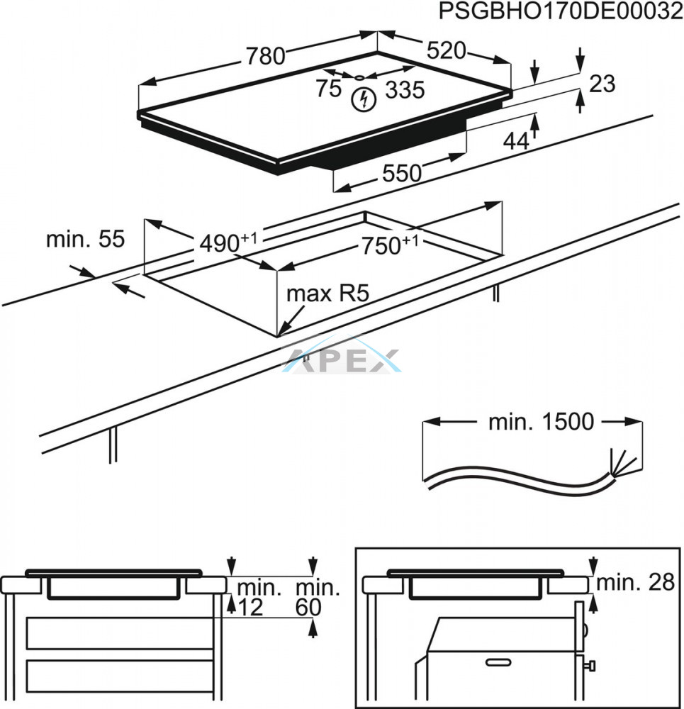 ELECTROLUX EIV835 Beépíthető indukciós főzőlap, Hob2Hood, Bridge funkció, 80 cm
