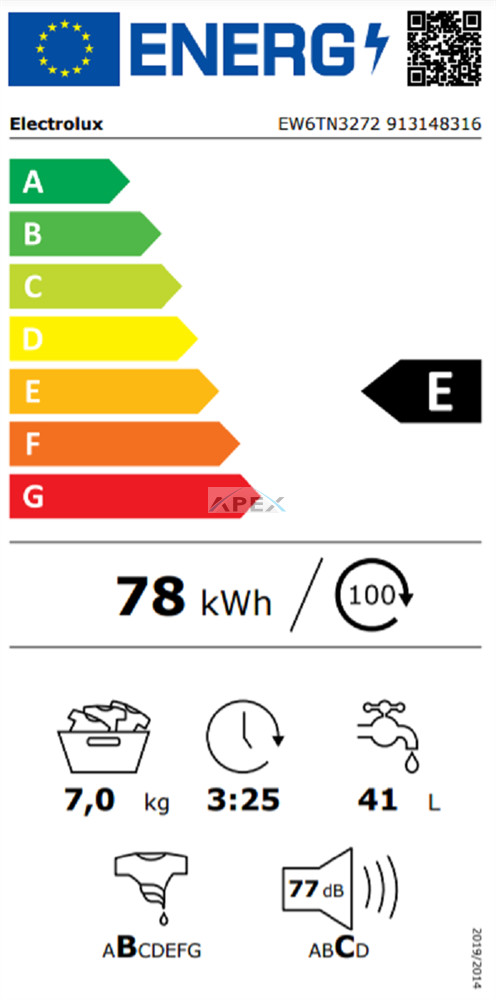 • Energiaosztály (mosás ciklus): E