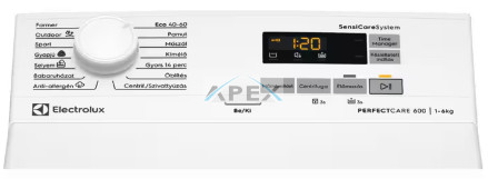 • Mosási programok: Be/Ki, Eco 40-60, pamut, műszál, kímélő mosás, Gyorsmosás (14 perc), öblítés, centrifuga/szivattyúzás, antiallergén program, babaprogram, selyem, gyapjú, sportruha, kültéri ruházat, farmer