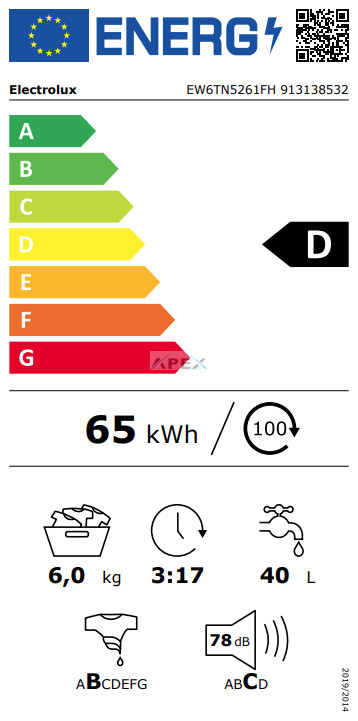 • Energiaosztály (mosás ciklus): D