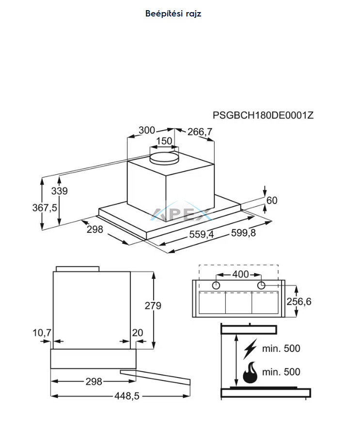 • Minimum távolság elektromos főzőlaptól (cm): 50