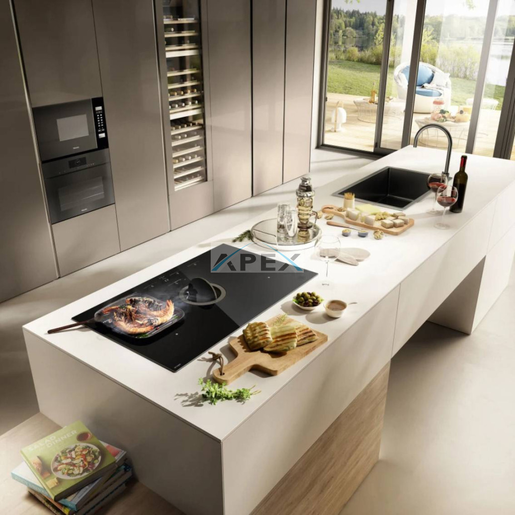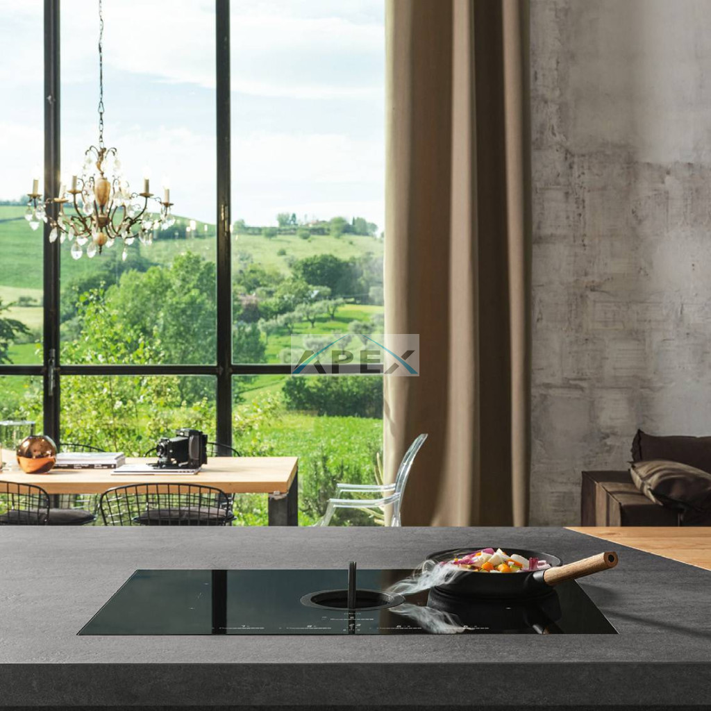 Indukció és elszívás? Egyetlen dolog. Egyetlen érintéssel szabadítsa fel az összes szívóerőt. Élvezze a főzőlap totál feketéje és a kezelőszervek fehér megvilágítása közötti kontrasztot. Élvezze az automatikus funkciókat, melyek végre az Ön szolgálatában állnak: lassú főzéshez, tej és húsleves melegítéséhez, krémek és mártások készítéséhez a túlmelegedés elkerülése érdekében, a készételek melegen tartásához. A nagyobb edényekben történő egyenletes főzés érdekében két szomszédos főzőzónát is aktiválhat egyszerre. A készülék gondoskodik az elszívásról: a láthatatlan és csendes integrált elszívó automatikusan szabályozza magát a füstök mennyiségének és minőségének függvényében. A rendszer fokozza az elszívóteljesítményt az újonnan kifejlesztett kombinált szag, zsír- és nedvességszűrőnek köszönhetően, amelyet úgy terveztek, hogy karbantartása egyszerű legyen.