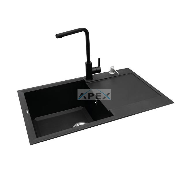1 medencés mosogatótálca csepegtetővel, munkalapra szerelhető, anyaga: granitek, színe: G40 nero, mosogatótálca mérete: 790x500 mm, medence mélysége: 220 mm, tartozékok: helytakarékos szifon, szűrőkosár, rögzítő fülek, elleci túlfolyó, 10 év garancia