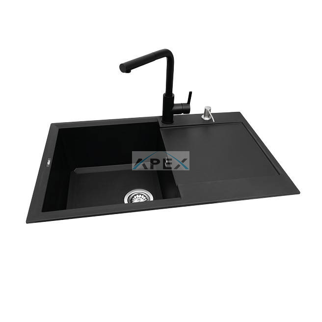 1 medencés mosogatótálca csepegtetővel, munkalapra szerelhető, anyaga: granitek, színe: G40 Nero, mosogatótálca mérete: 790x500 mm, medence mélysége: 220 mm, tartozékok: helytakarékos szifon, szűrőkosár, rögzítő fülek, elleci túlfolyó, 10 év garancia