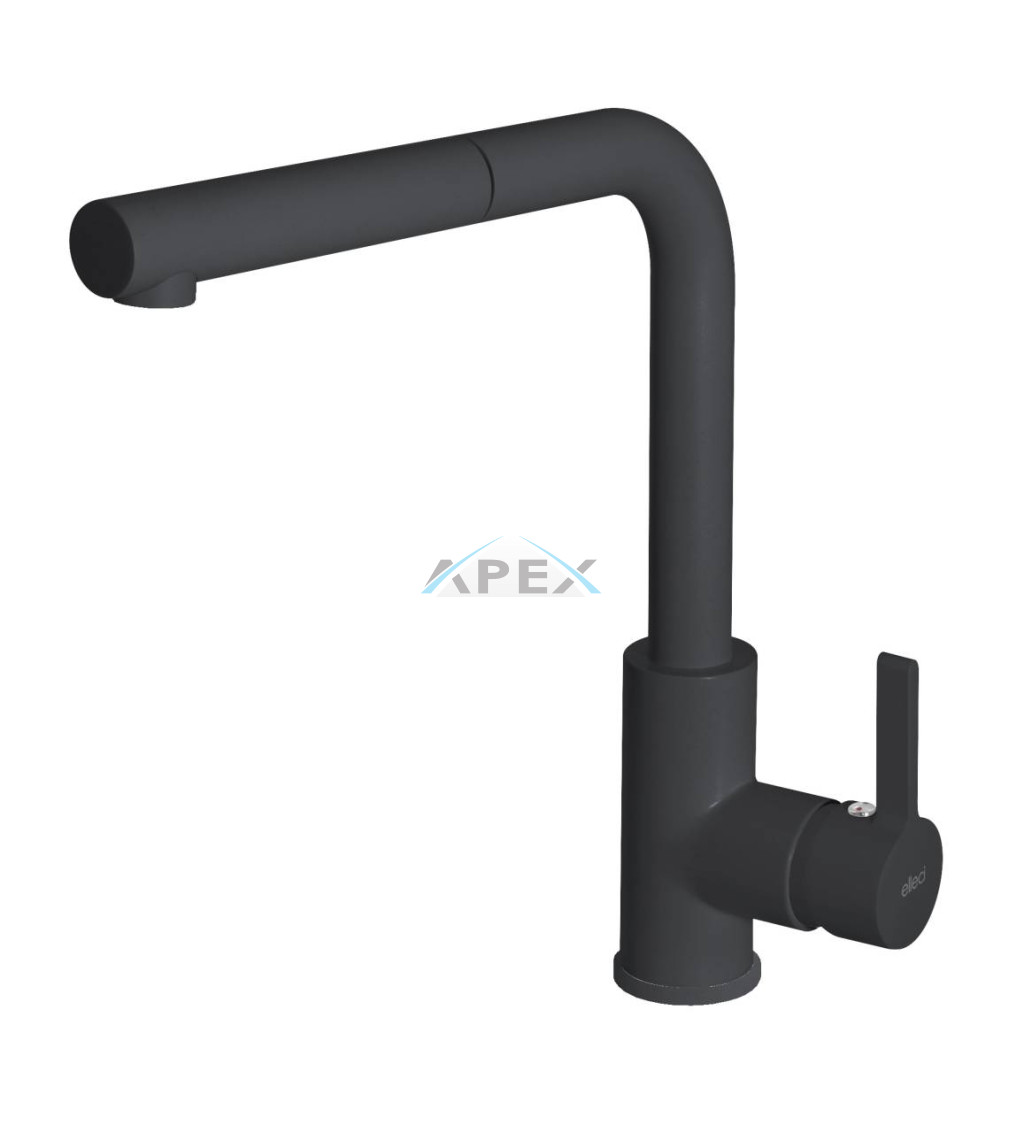 Egykaros modern, magas, kerámiabetétes csaptelep, oldalsó szabályzóval, forgatható kifolyócsővel, kihúzható fejjel, normál beépítéssel, Ø35 mm-es furattal. G40 nero színben, 5 év garancia