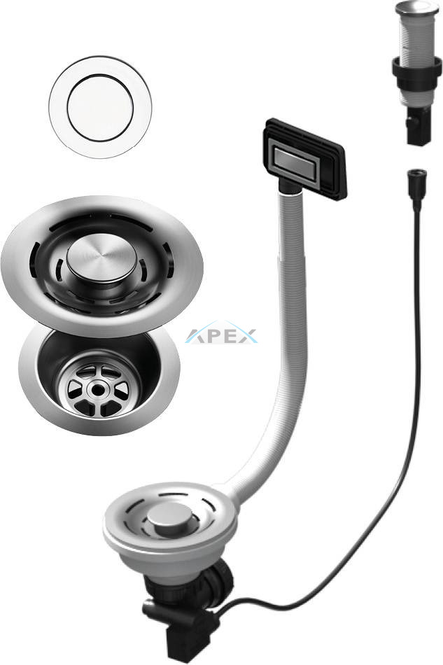 ELLECI - FLOW PRO (PUSH-CONTROL OPEN UP) automata dugókiemelő egymedencés mosogatókhoz - inox