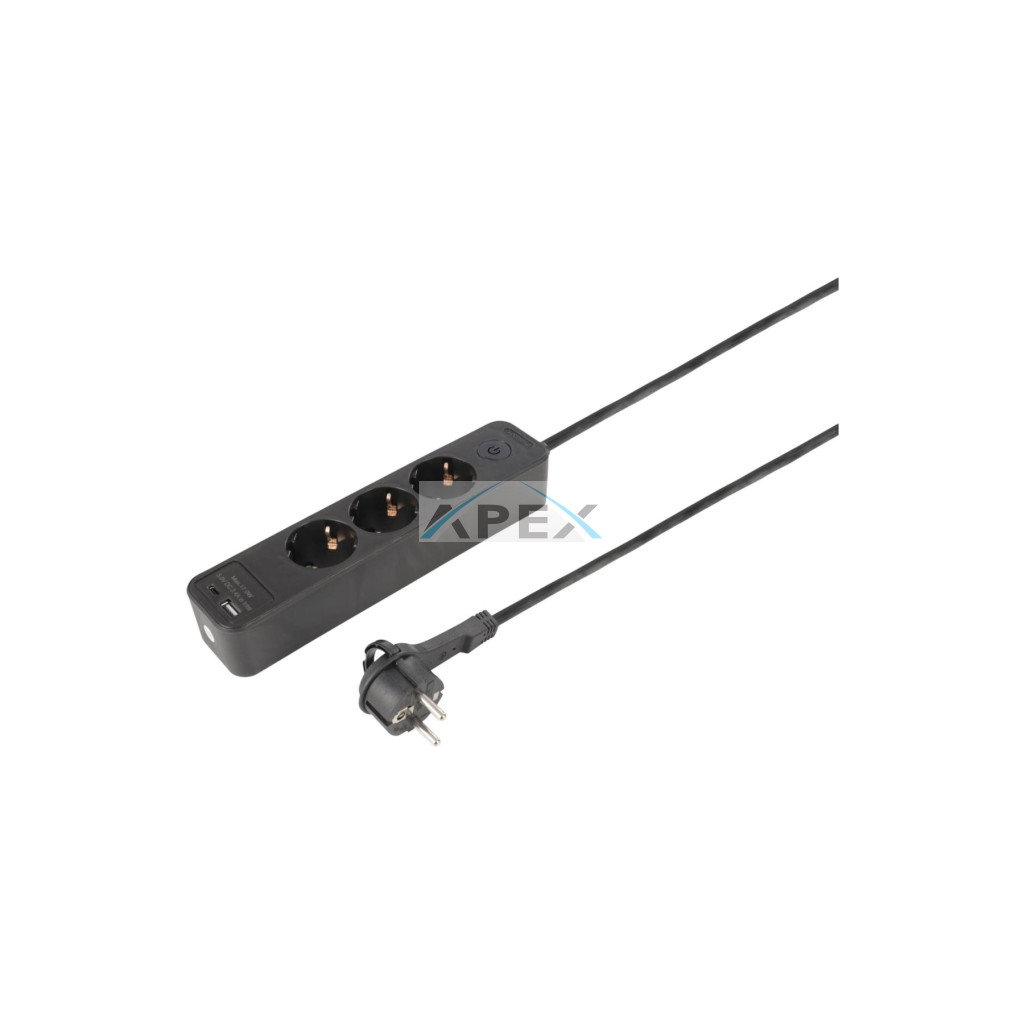 ETM 55.201.24 elosztó, 3 aljzat, kapcsolós, fekete, USB-A, USBC aljzat, 1,5 méter hosszú
